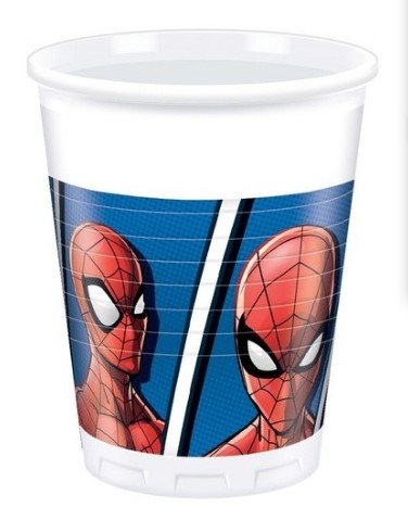 Chi non vorrebbe essere un supereroe almeno per un giorno?L'uomo ragno è uno dei più amati ed intramontabili supereroi!Da noi puoi trovare tutto il necessario per organizzare una festa a tema Spiderman.La confezione è composta da 8 pezzi, contenenti 200ml. Sono interamente realizzati in plastica.Sul bicchiere è stampata l'immagine di Spiderman, uno dei supereroi più famosi del pianeta!Questo bicchiere è di fondo bianco con l’immagine stampata esternamente.Sono perfetti da usare per un festeggiare un compleanno o anche per una merenda in casa con gli amici del bambino o qualunque evento coinvolga bimbi amanti di Spiderman, dei ragni o dei supereroi!I bicchieri sono estremamente resistenti e idonei per contenere qualsiasi tipo di bevanda, anche gassata o leggermente calda. Si possono utilizzare anche per contenere caramelle o salatini divisi per ogni invitato.Non ti devi preoccupare di lavare le stoviglie in quanto i bicchieri sono monouso.Sono abbinabili con piatti, tovaglioli e tovaglia con lo stesso tema per rendere la festa Spiderman centrica!Se durante la festa dovessero esserci più bevande si possono utilizzare dei semplici bicchieri monocolore rosso e blu, i colori simbolo di Spiderman.Essendo bianchi si possono personalizzare scrivendo esternamente con il pennarello indelebile il nome del proprietario del bicchiere in modo da non confonderli.Sarebbe molto divertente spargere i bicchieri in giro per il tavolo e spingere i bambini a trovare quello con il loro nome.Con lo stesso tema sono presenti festoni e palloncini per personalizzare ancora di più il party e renderlo esclusivo.Sarà bellissimo per i bambini amanti dei supereroi vedere la sala tutta addobbata.Sono disponibili anche nella versione The Avengers.Sono disponibili anche con la stampa di tanti altri personaggi dei cartoni animati.
