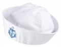 Cappello da marinaretta di color bianco con una bellissima ancora color azzurra sulla parte frontale, con brillantissime paillette