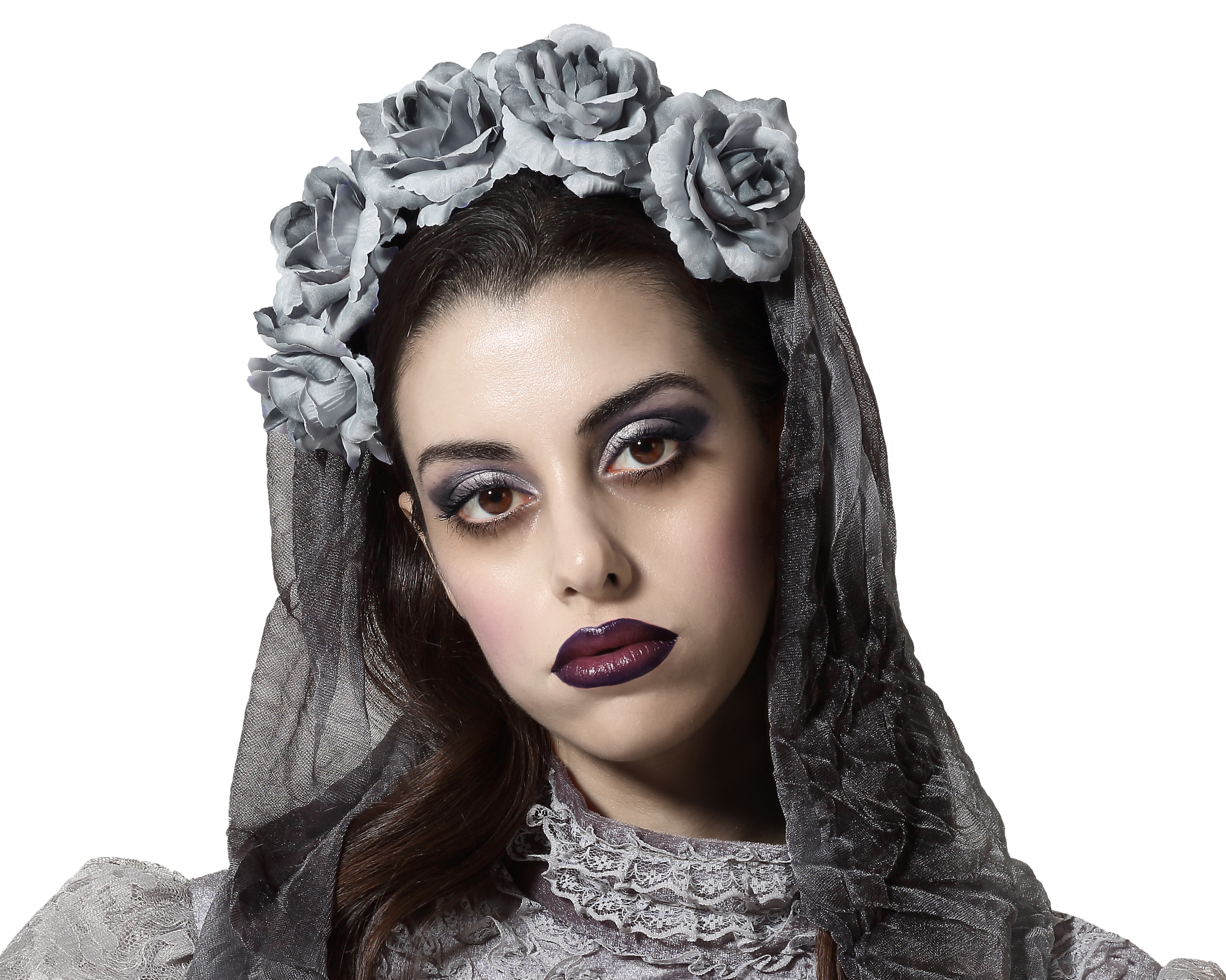 CERCHIETTO GRIGIO CON ROSE E VELO 55CM (66469)