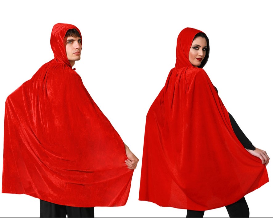 MANTELLO CON CAPPUCCIO IN VELLUTO ROSSO 100CM (67127)