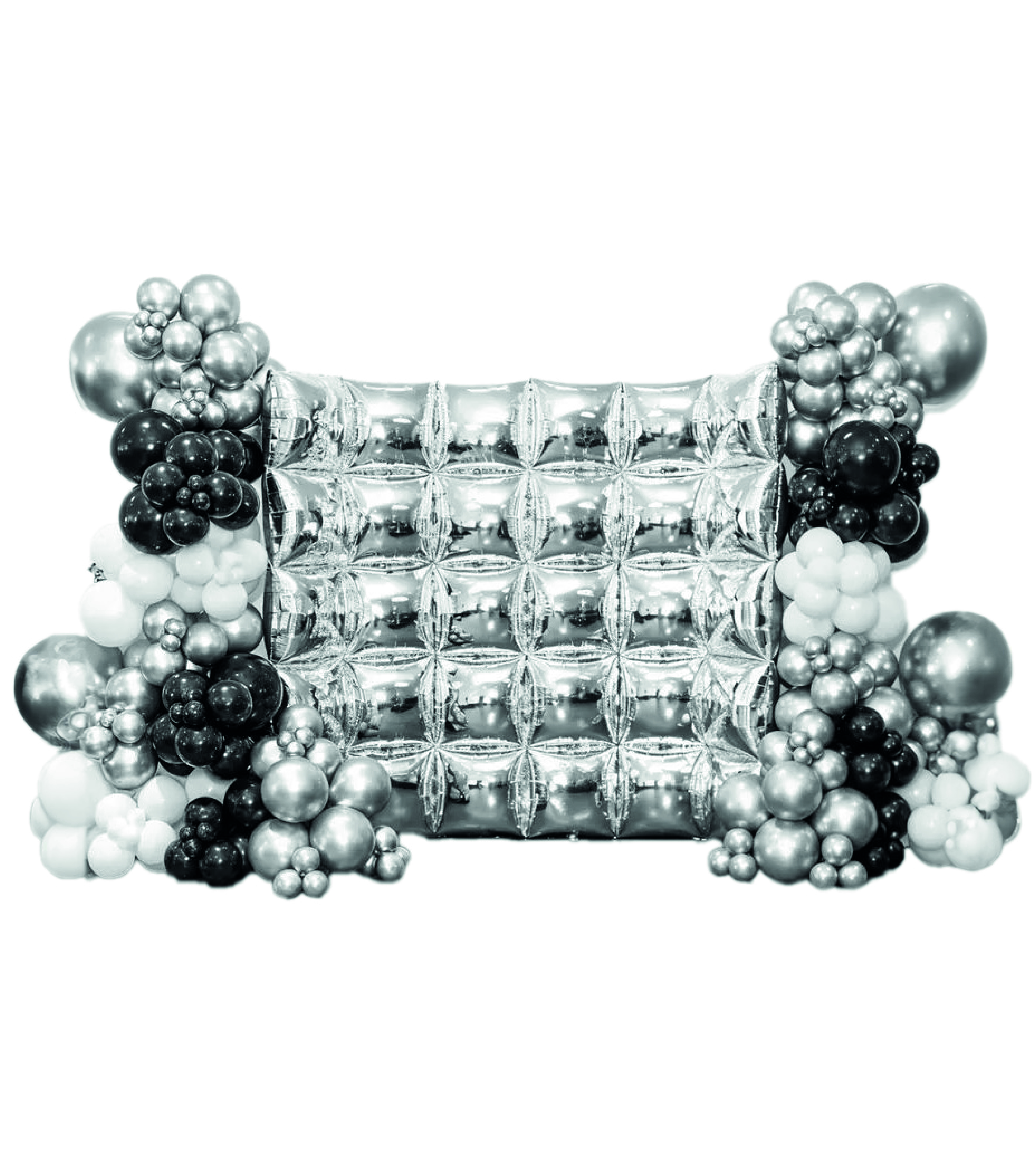 WALL DI PALLONCINI CON MYLAR E LATTICE SILVER, BIANCO E NERO IDEALE COME SFONDO PER FOTO PER VARI EVENTI TRA CUI CERIMONIE, INAUGURAZIONI ECC DISPONIBILE IN TUTTI I COLORI 3 TORRETTE DA SUPPORTO IN FERRO A NOLEGGIO DA RENDERE (SU CAUZIONE IN CONTANTI DI 25€ CAD)